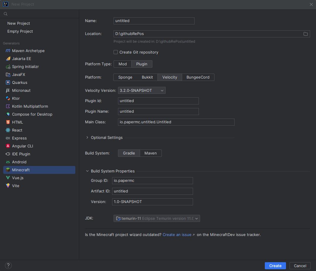 Now that you have installed the plugin, you can create a new project by going to File > New > Project... and selecting Minecraft from the list of options.